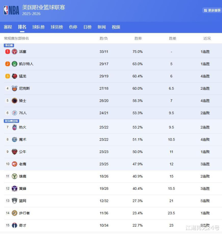 东部最新排名: