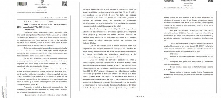 检方指出,教育机构、监护人及布宜诺斯艾利斯自治市儿童与青少年权益委员会的技术团队协同采取了心理辅导与陪伴机制,旨在确保未成年人权益保障。判决书认定,目前既无客观证据支撑犯罪假设,亦无待查证的证据可推动对伊卡尔迪的刑事追诉。
