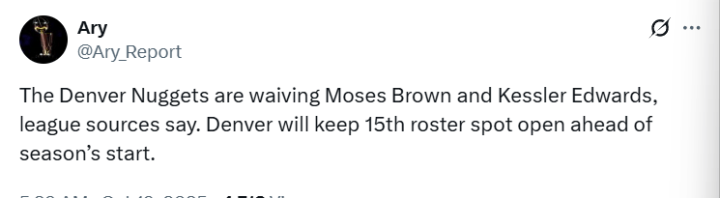 虎扑10月19日讯根据美国记者Ary的消息,丹佛掘金将裁掉中锋摩西-布朗和小前锋凯斯勒-爱德华兹。