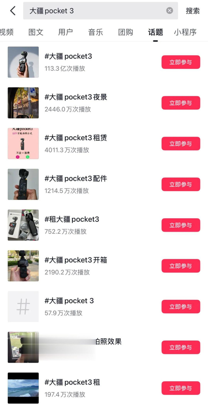 图/抖音大疆pocket3相关话题火爆出圈