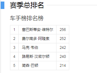 2010年阿布扎比站最终赛果及2010年最终车手积分榜如下: