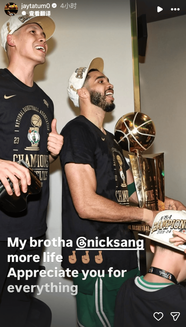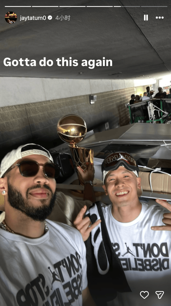 其中在一张照片中,塔图姆配上“快了”的文字;而在另一张2024年夺冠的照片中,塔图姆还写道:“必须再这样做一次”