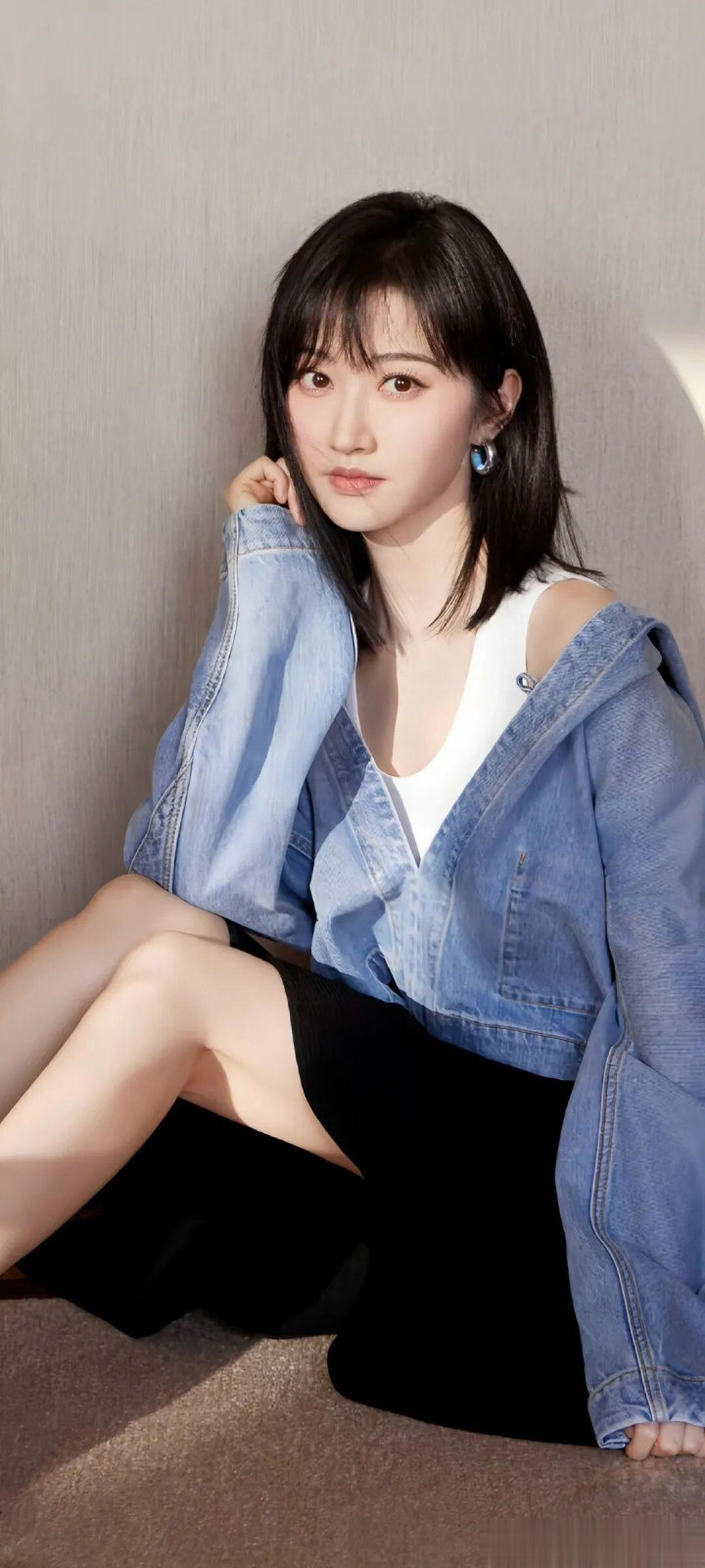 马伊琍剪了齐肩短发年轻10岁! 穿蓝衬衫+短裙+乐福鞋, 时髦高级