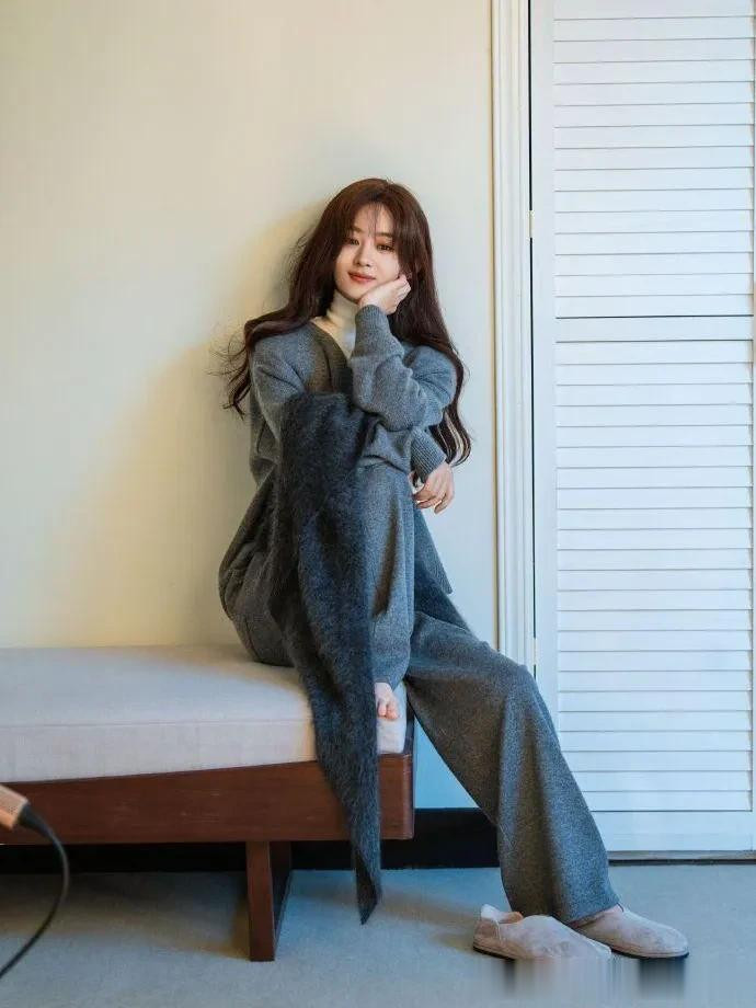 赵丽颖当妈后气质大变! 灰色毛衣+打底衫+阔腿裤, 简约又高级!